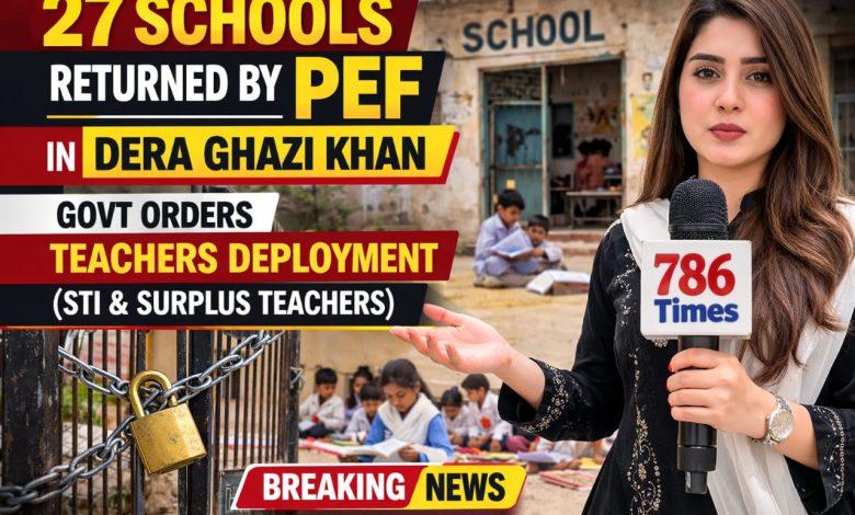 Breaking news from Dera Ghazi Khan where 27 schools previously operating under the Punjab Education Foundation (PEF) have been returned to the government. According to official orders, the authorities will now deploy STI teachers or surplus teachers to ensure these schools continue functioning.